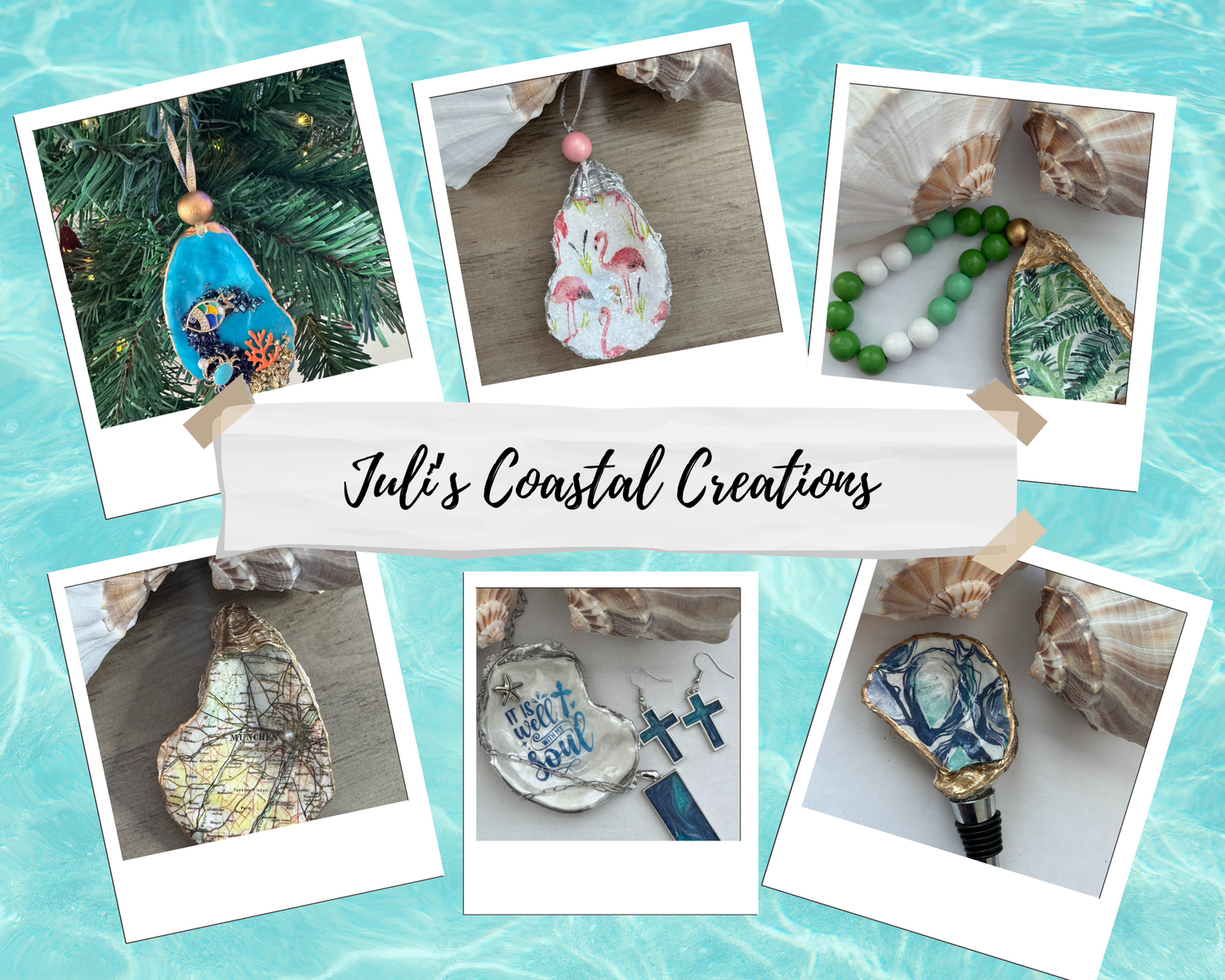 I’m Juli, the founder and artist behind Juli’s Coastal Creations, where I handcraft coastal-inspired jewelry, oyster shell art, and keepsakes that capture the beauty and spirit of the sea. Each piece is made with care and creativity—often using real shells collected right here from St. Pete Beach, Florida.