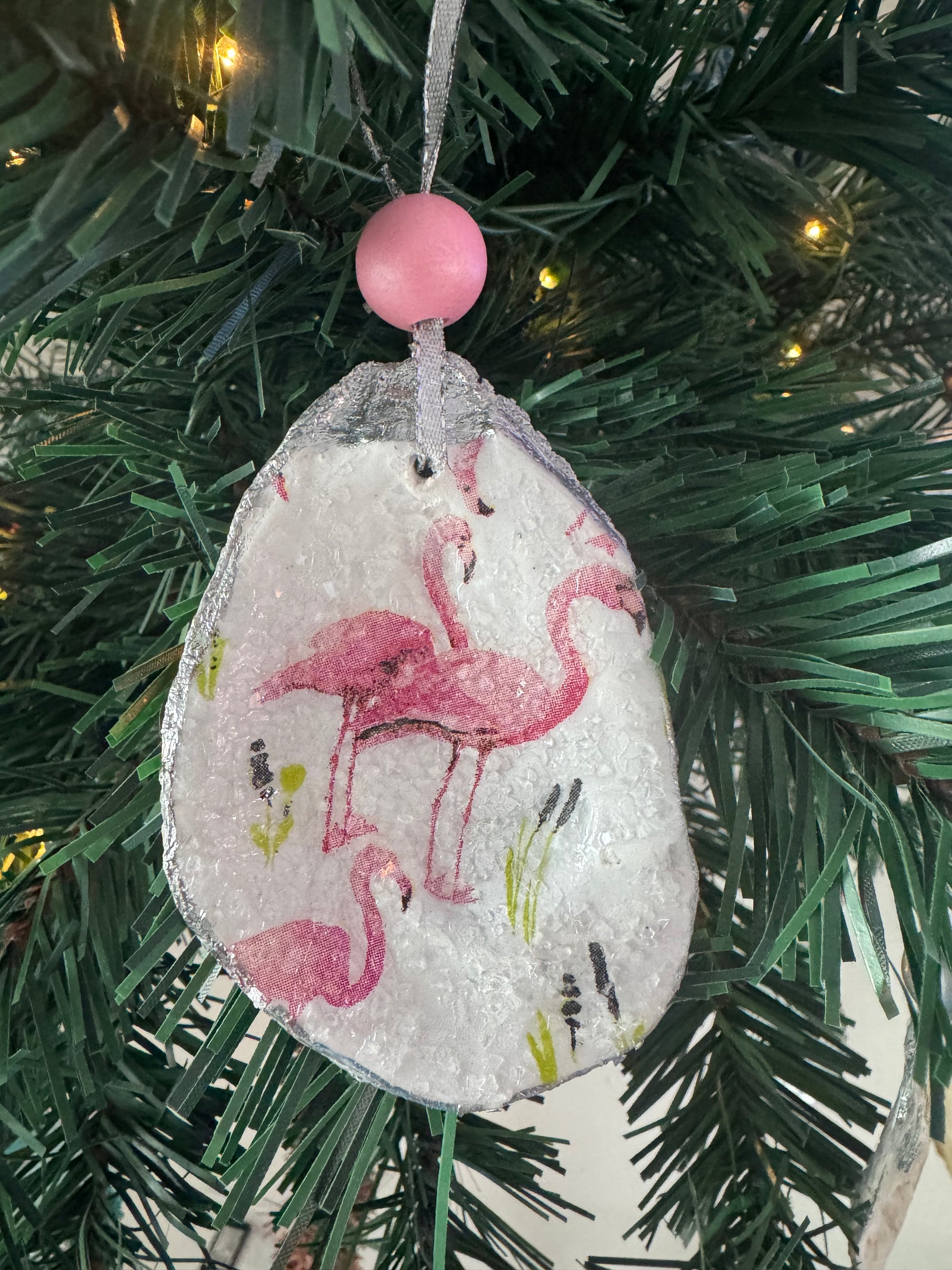 Sealed in resin,Β this handcrafted ornament blends coastal elegance with playful tropical vibes. Perfect for beach lovers, flamingo fans, or anyone who loves a little extra sparkle! π