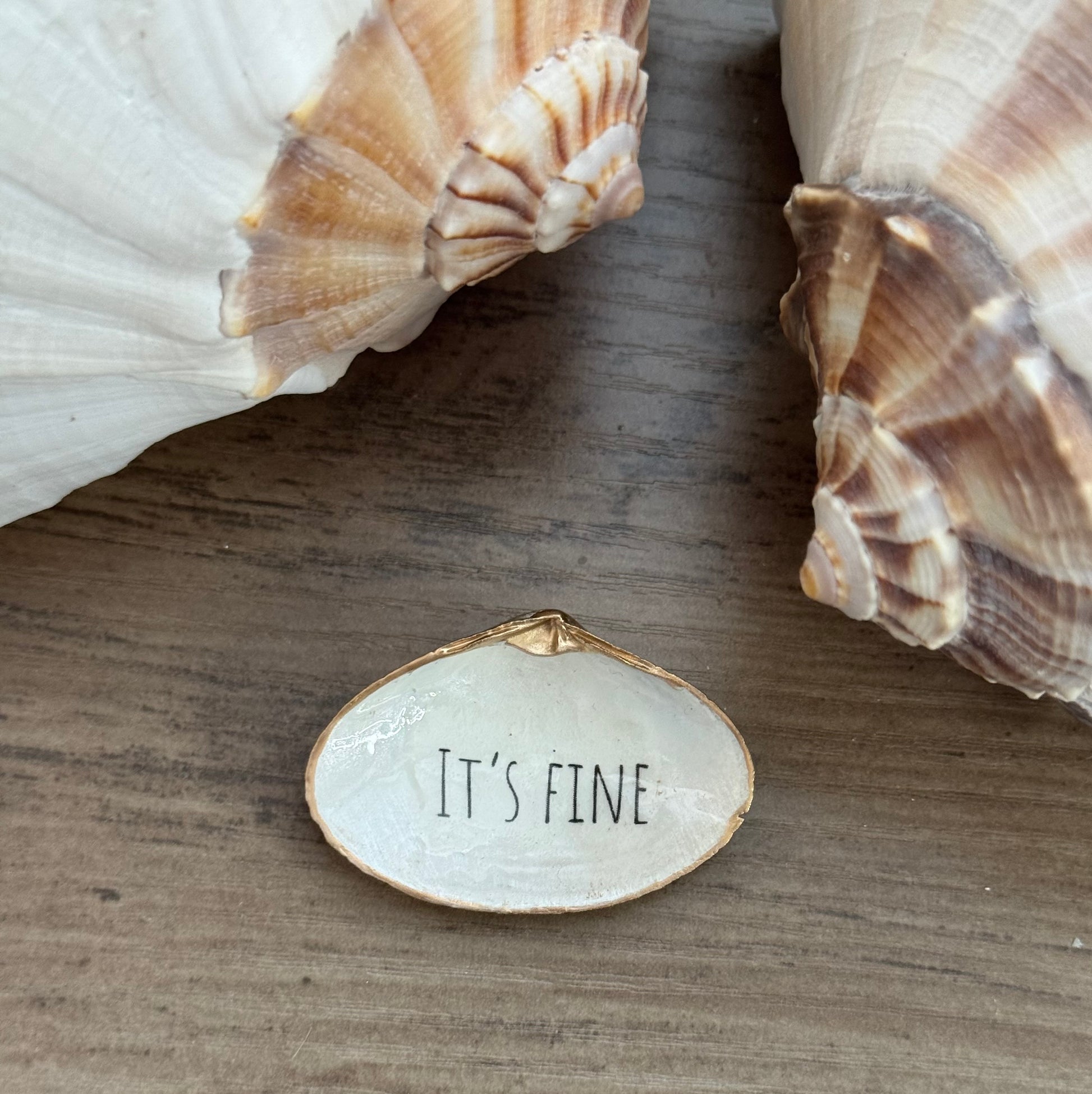 These shells are meant to make you laugh, nod in agreement, or gift to someone who appreciates a little humor with their coastal décor. Display them on a shelf, desk, or make them into a magnet by request for a daily dose of personality.